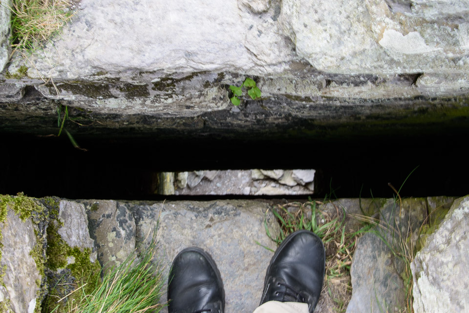 Doug looking down the Ballycarberry Castle 'Murder Hole', through which hot oil was poured on attackers.
