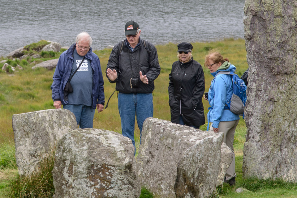 Rick, John, Patty, and Jeanie discussing the astronomical implications of the stone circle.