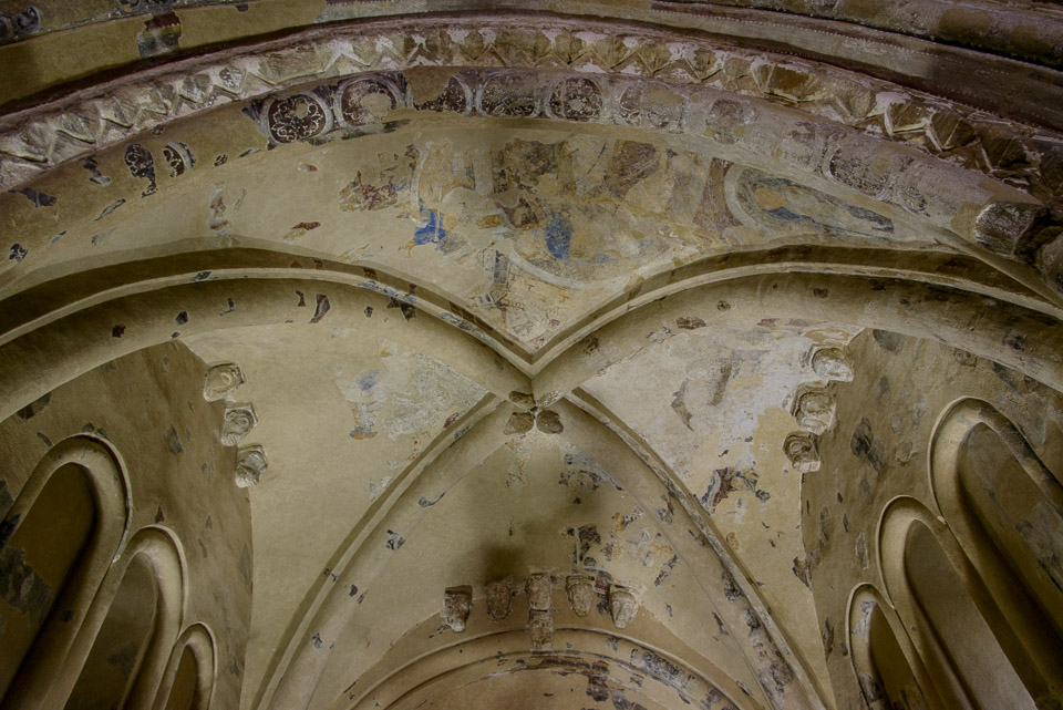 Frescoes on the chancel ceiling in Cormac's Chapel.