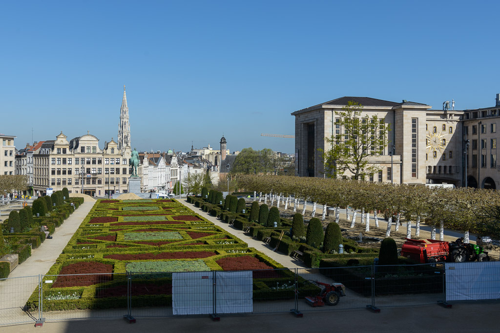 A view toward the old city center over the Jardin du Mont des Arts, from near the Royal Museum of Fine Arts