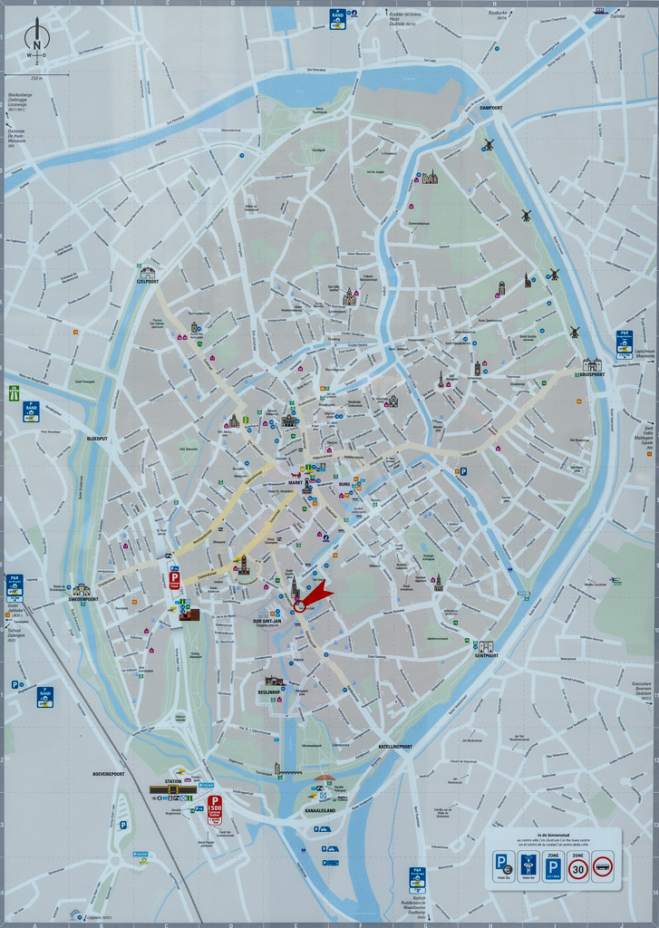 The red arrow marks this spot between The Church of Our Lady and the Memling Museum.