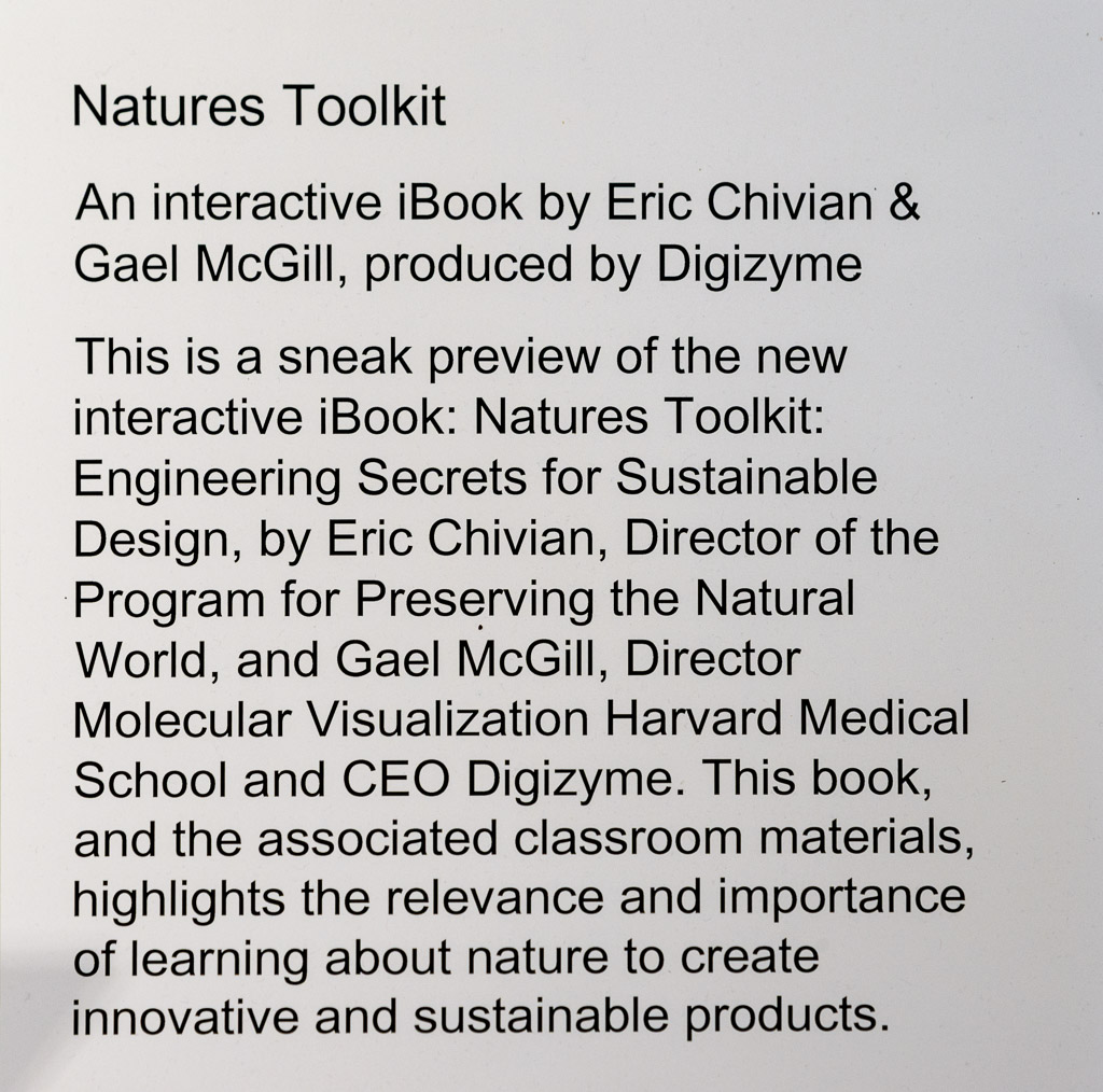The first six photos are part of an exhibit about learning from nature to create innovative and sustainable products.