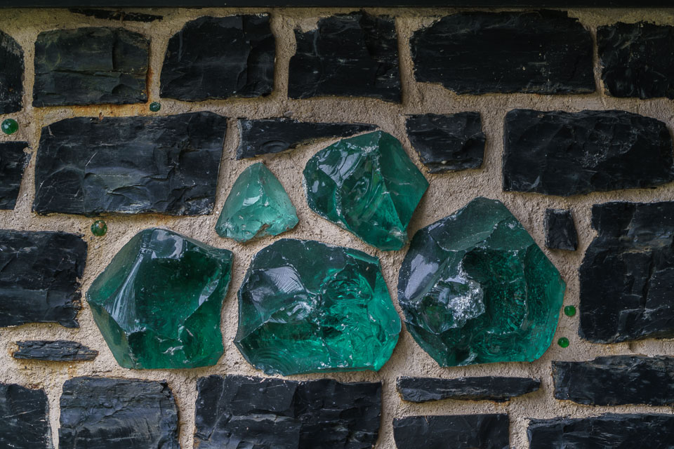 Detail of the exterior of a coal and slag glass wall
