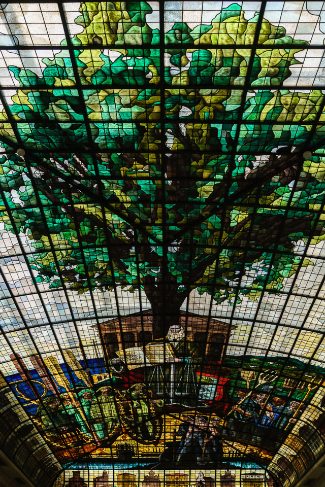 The Tree of Gernika is depicted in the stained glass ceiling of the Cultural Center, located in the Assembly building.