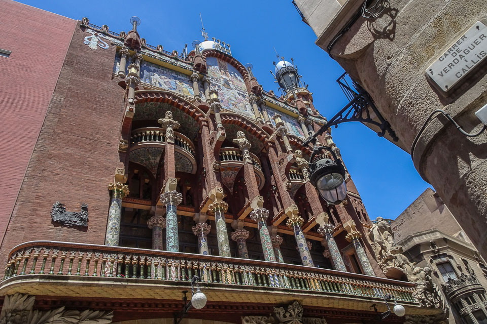 The façade of the original Palau de la Música building, designed in the Modernisme style (the uniquely Catalan expression of the fin de siecle art movement that includes Art Nouveau) by architect Lluis Domenech i Montaner - 1905-08