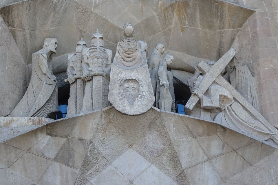 The path to the crucifixtion showing Veronica in the center with a vail upon which Jesus' face appears
