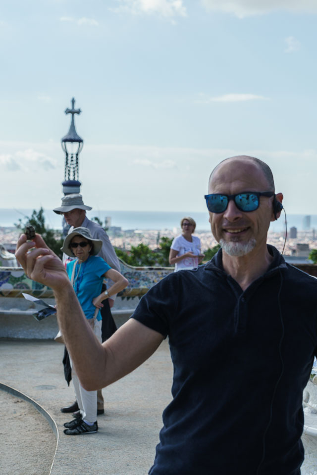 Armand is showing how Gaudí's designs are inspired by natural forms such as this cone.