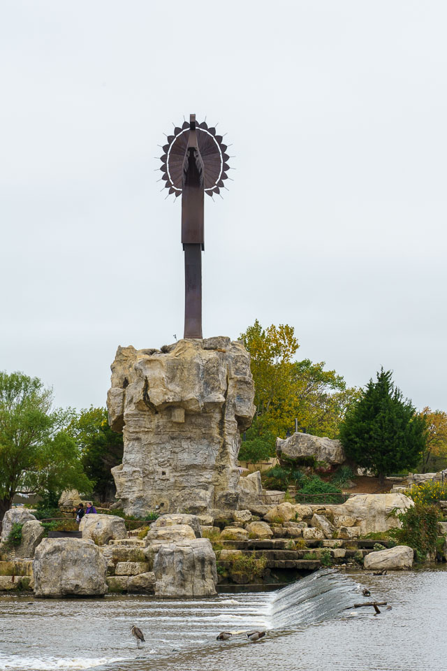 'The Keeper of the Plains', Blackbear Bosin, Sculptor - 1974. The sculpture is located at the confluence of the Arkansas and Little Arkansas Rivers in Wichita.