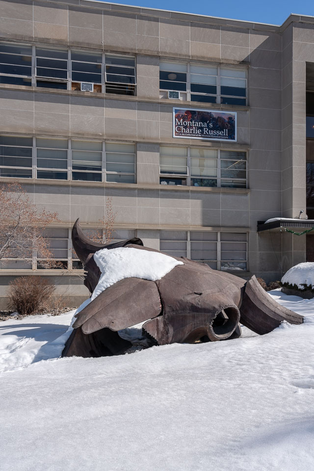 The Montana Historical Society Museum in Helena has an excellent collection of Charlie Russell art. The sculpture, 'Herd Bull' - 1990, is the work of Sioux artist Benji Daniels and Billings sculptor James J. Hadcock.