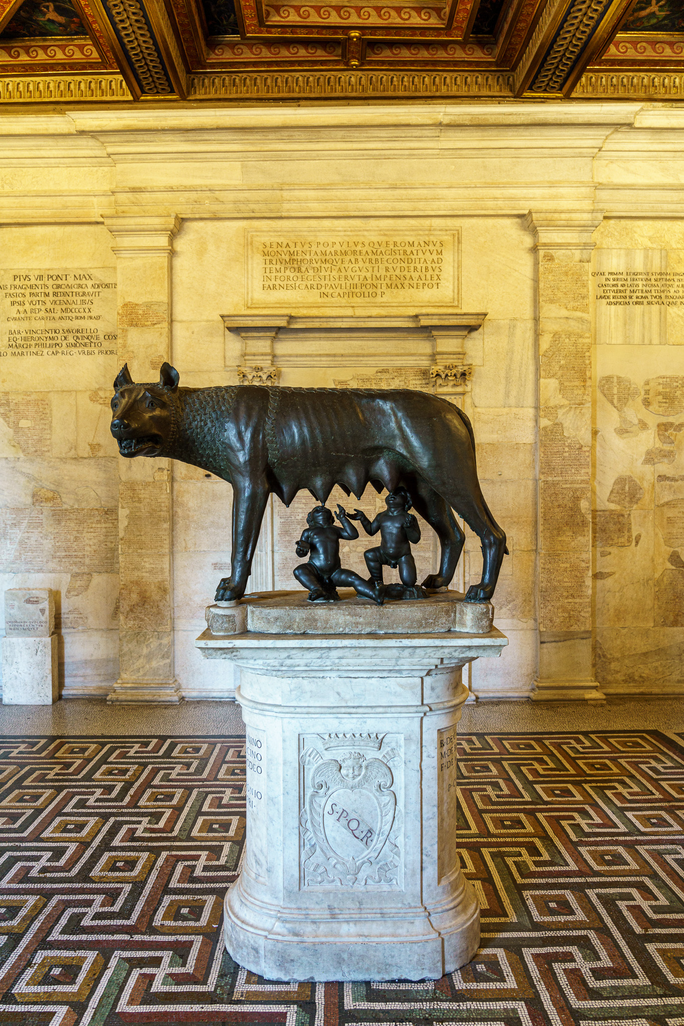 The Capitoline Wolf - Sculpture of Romulus and Remus nursing on the she wolf