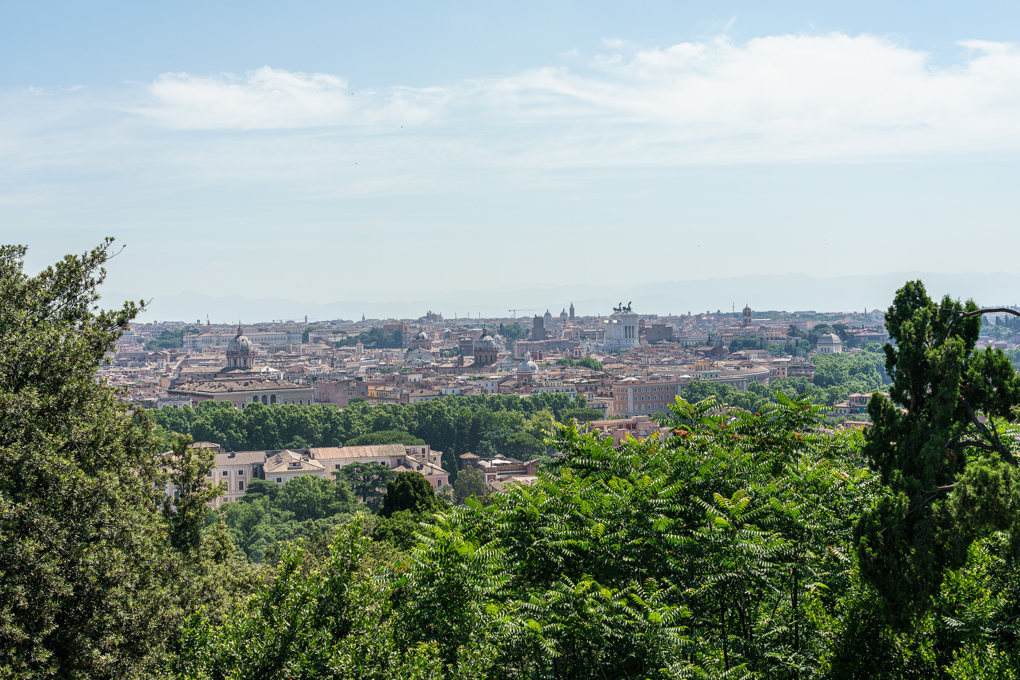 Piazza Garibaldi, located on the highest point of the Janiculum hill on the west side of Rome, offers panoramic views of Rome to the east.