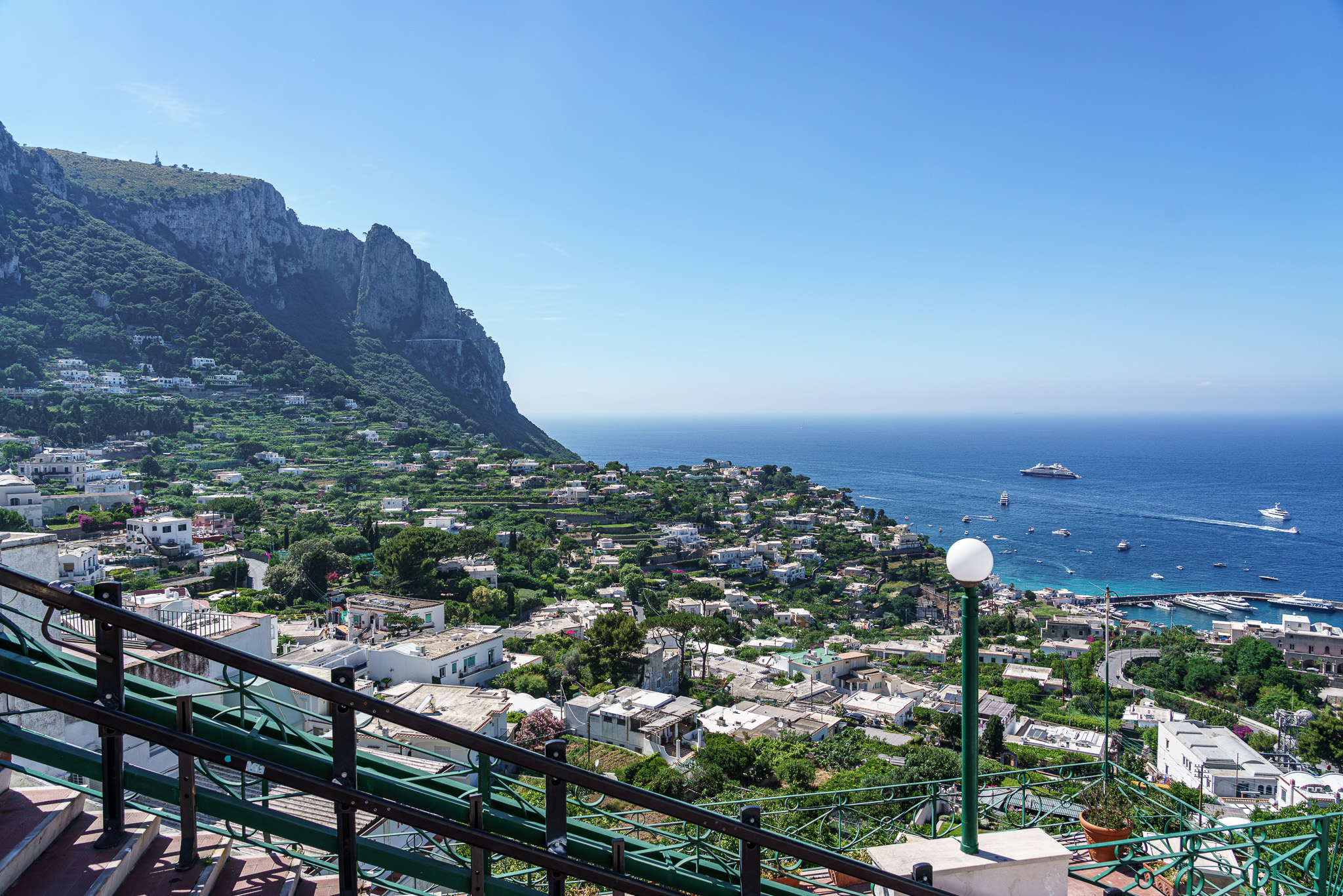 The north side of the city of Capri with the Marina Grande in the lower right. Le Bougainville is anchored well outside the marina.