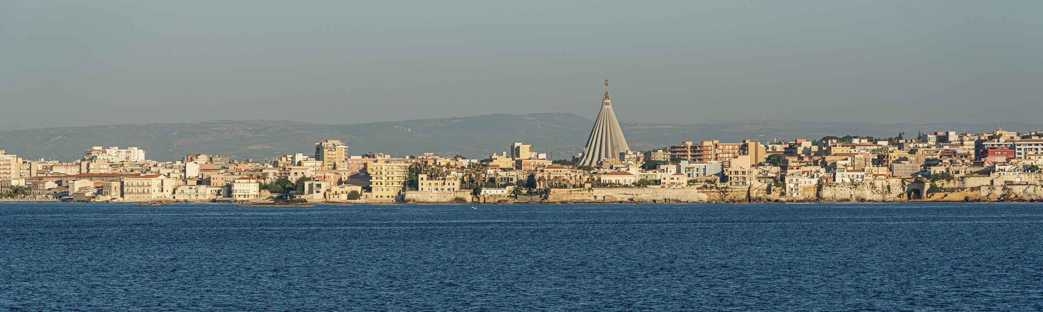 The tallest structure on the skyline is the Church of the Weeping Madonna.