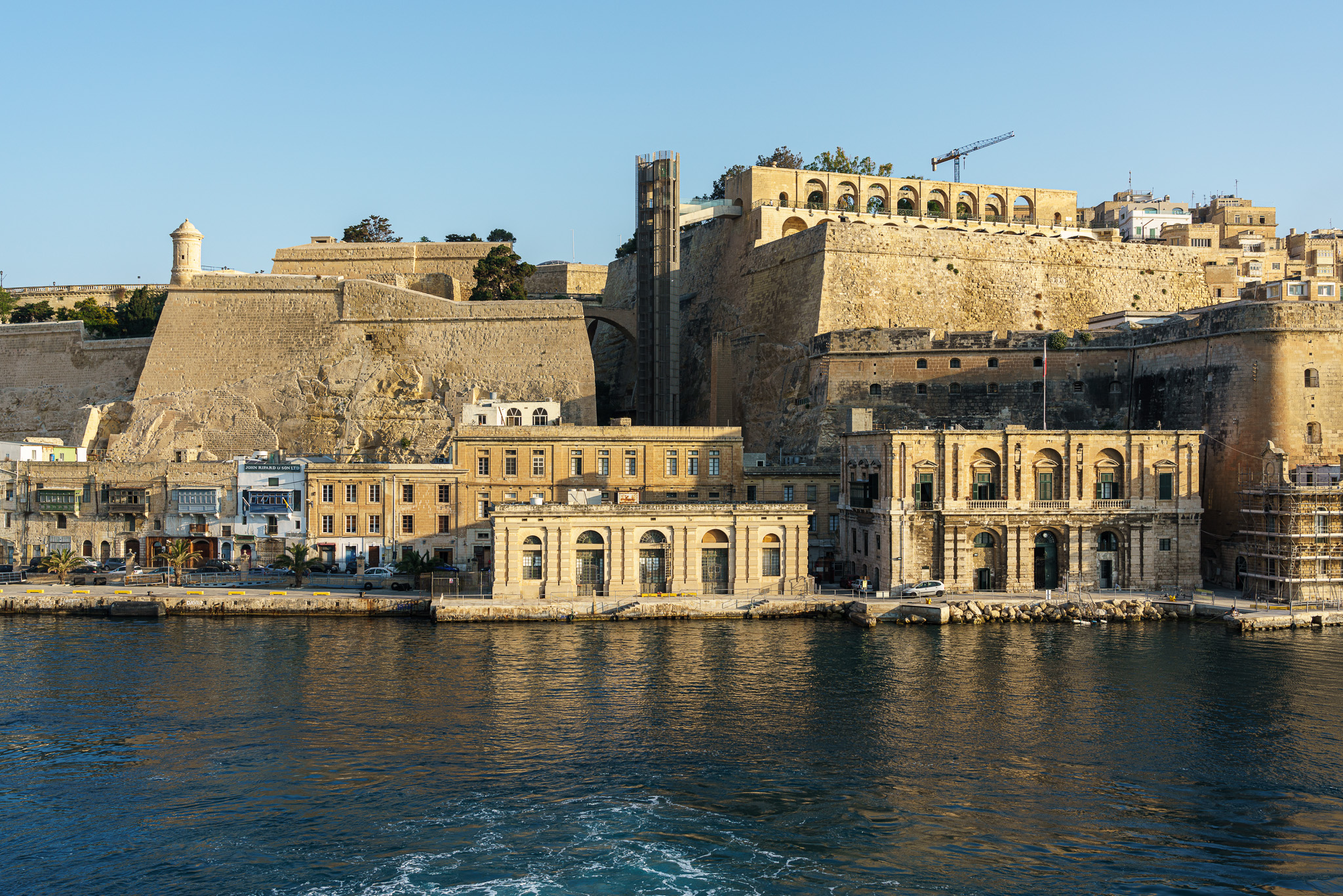 The modern tower is an elevator that goes from the top of the fortifications to sea level.
