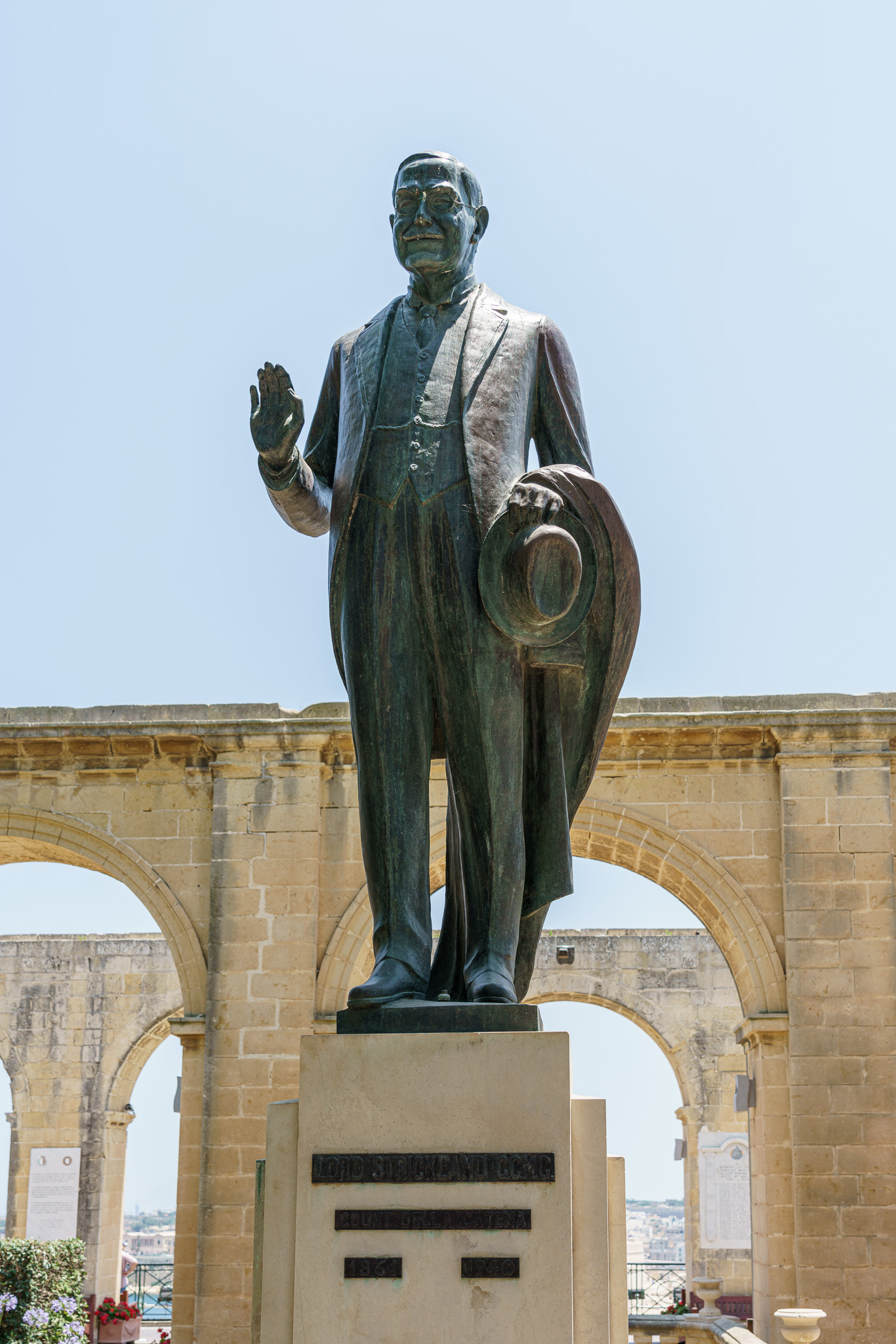 The plaques on the base of this statue read: 'Lord Strickland G.C.M.G - Count Della Catena - 1861 - 1940'