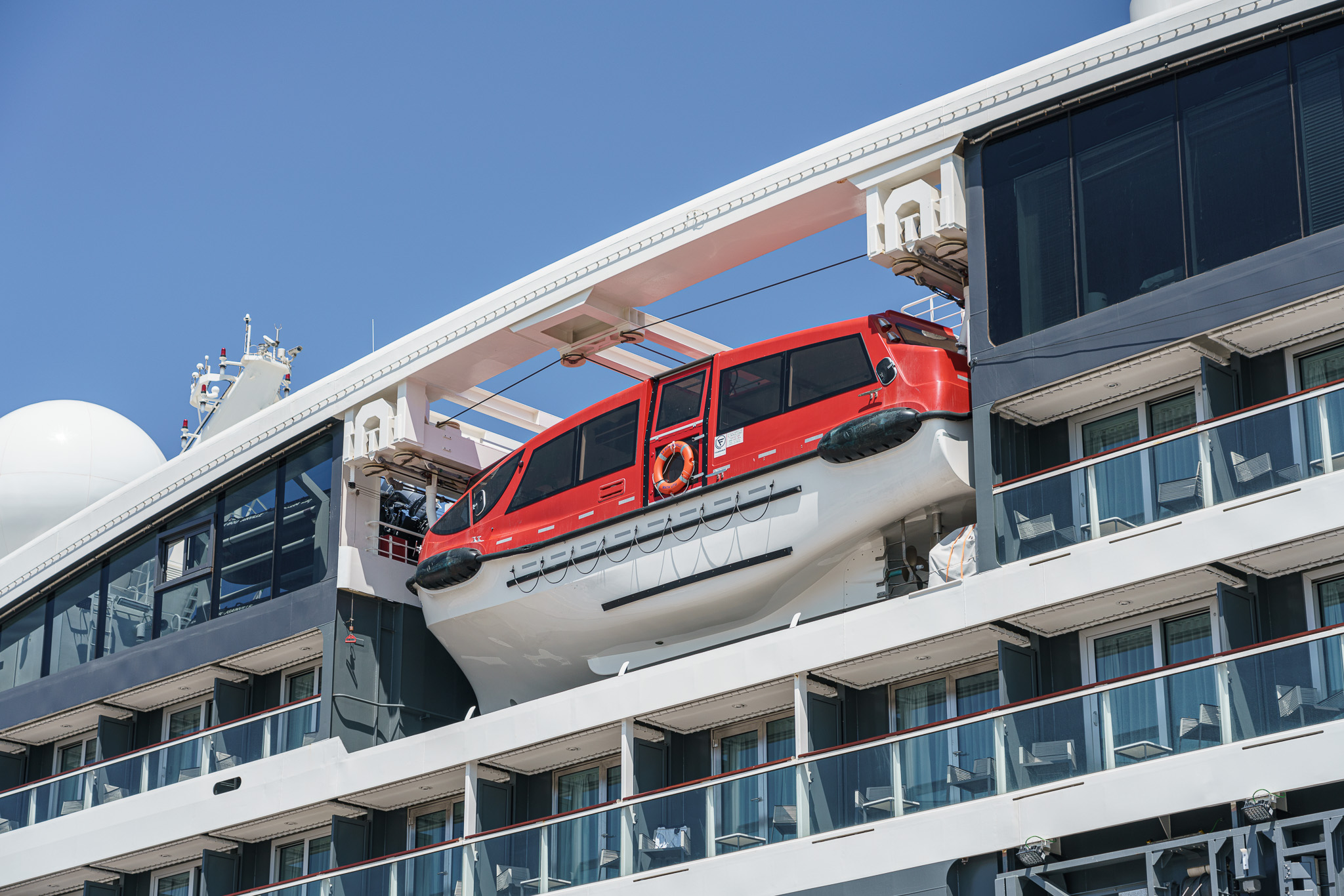 The ship's lifeboats served double-duty as the tenders to transport us to and from shore when the ship was anchored off-shore.