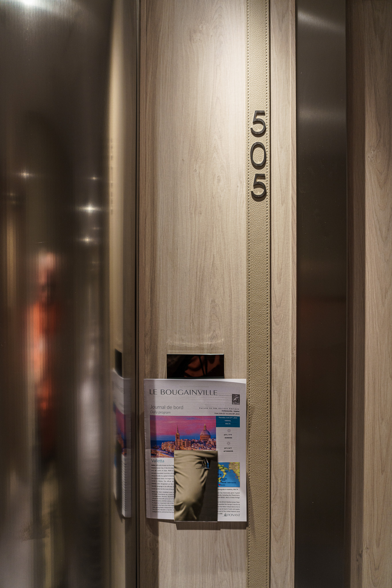 Our cabin, 505, with our daily newsletter in the mail slot.