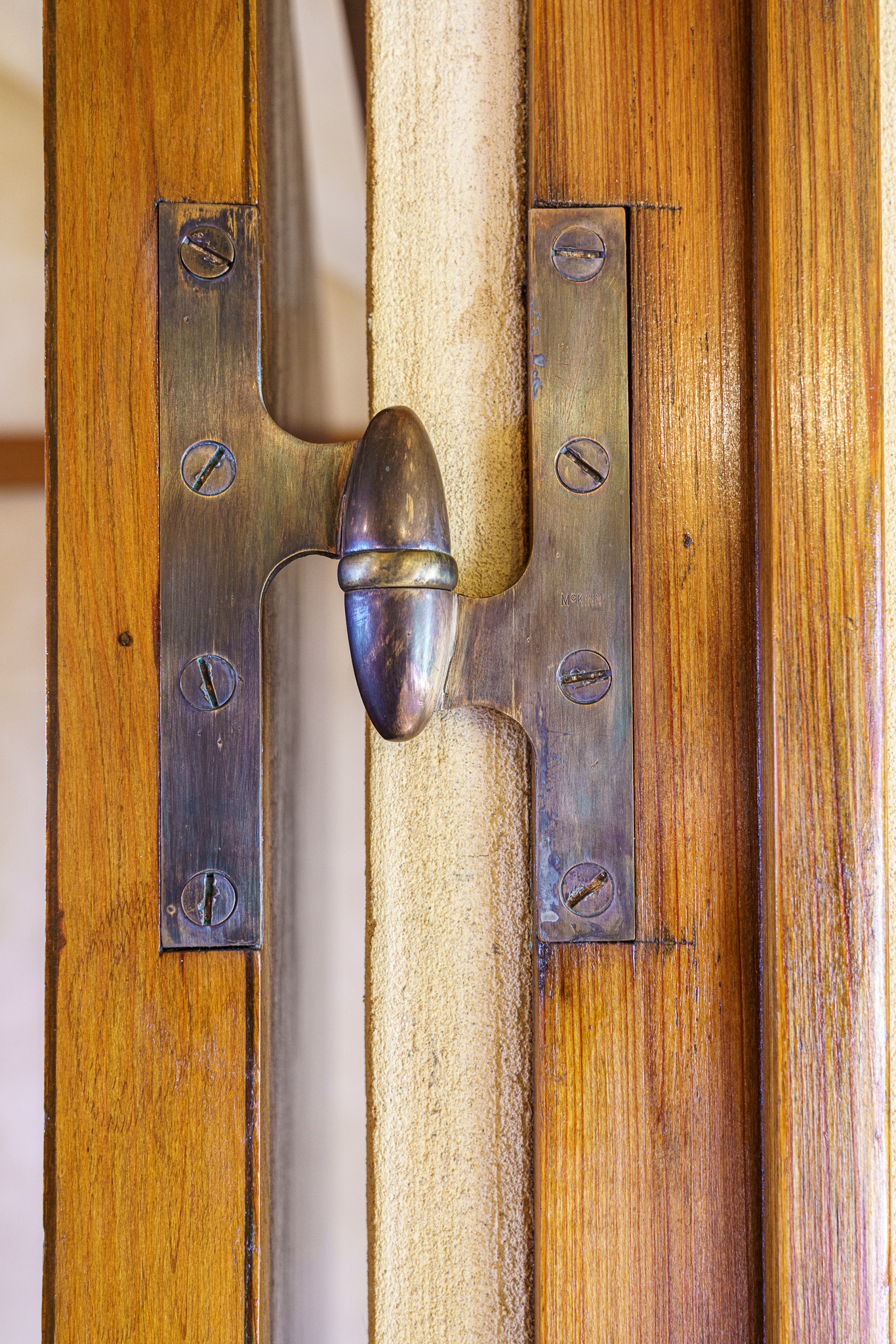 Door hinge (open): This hinge design allows the door to be opened so that it folds completely back against the wall.