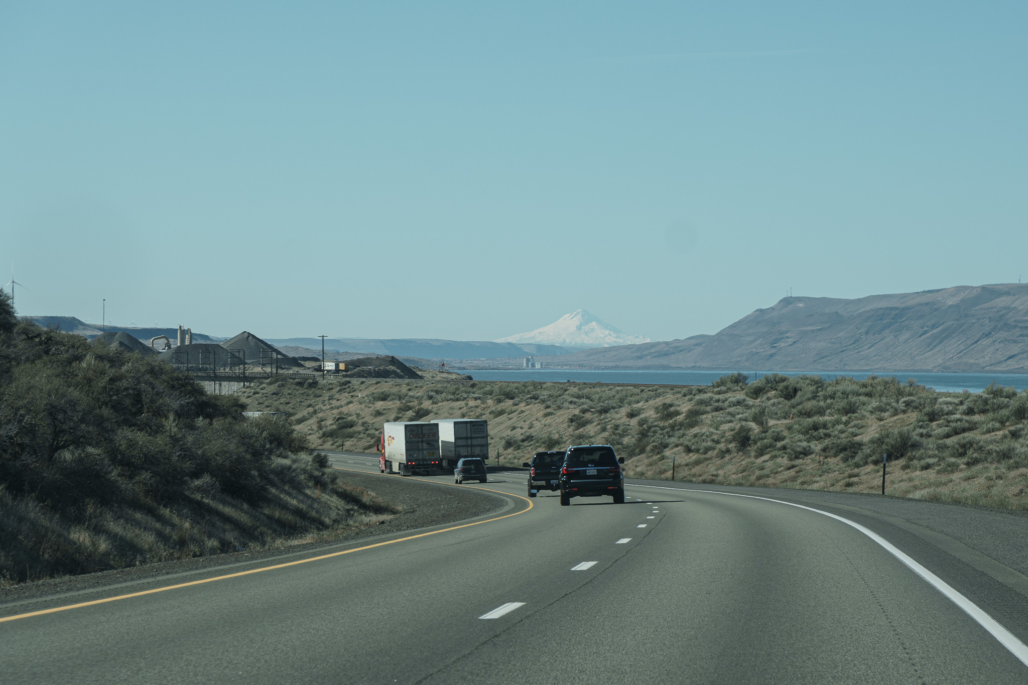 Mt Hood and the Columbia River while travelling west on Interstate 84