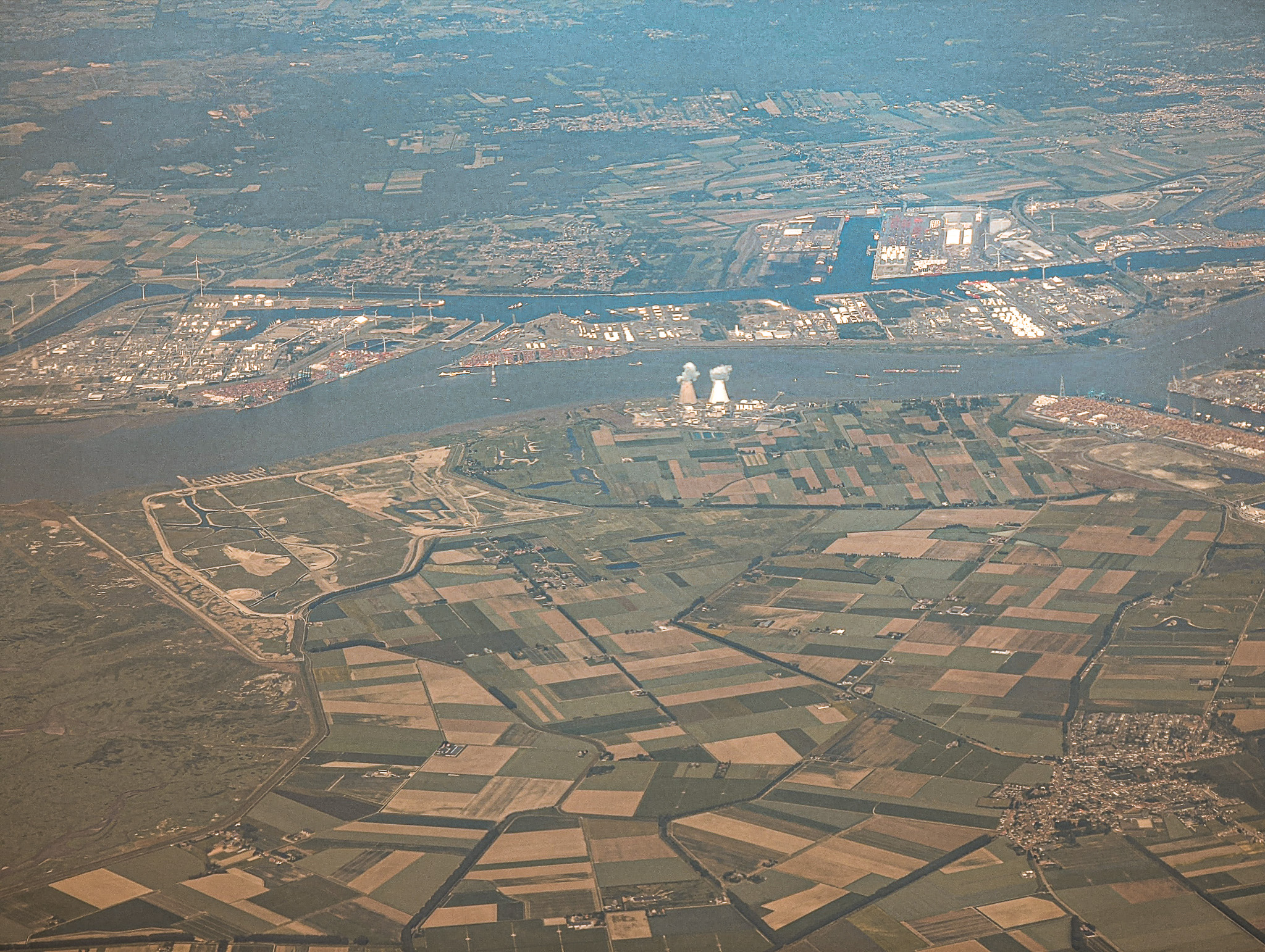 As we approached Schiphol Airport in Amsterdam, we saw agricutural fields, a power plant, and windmills of the power generation type.
