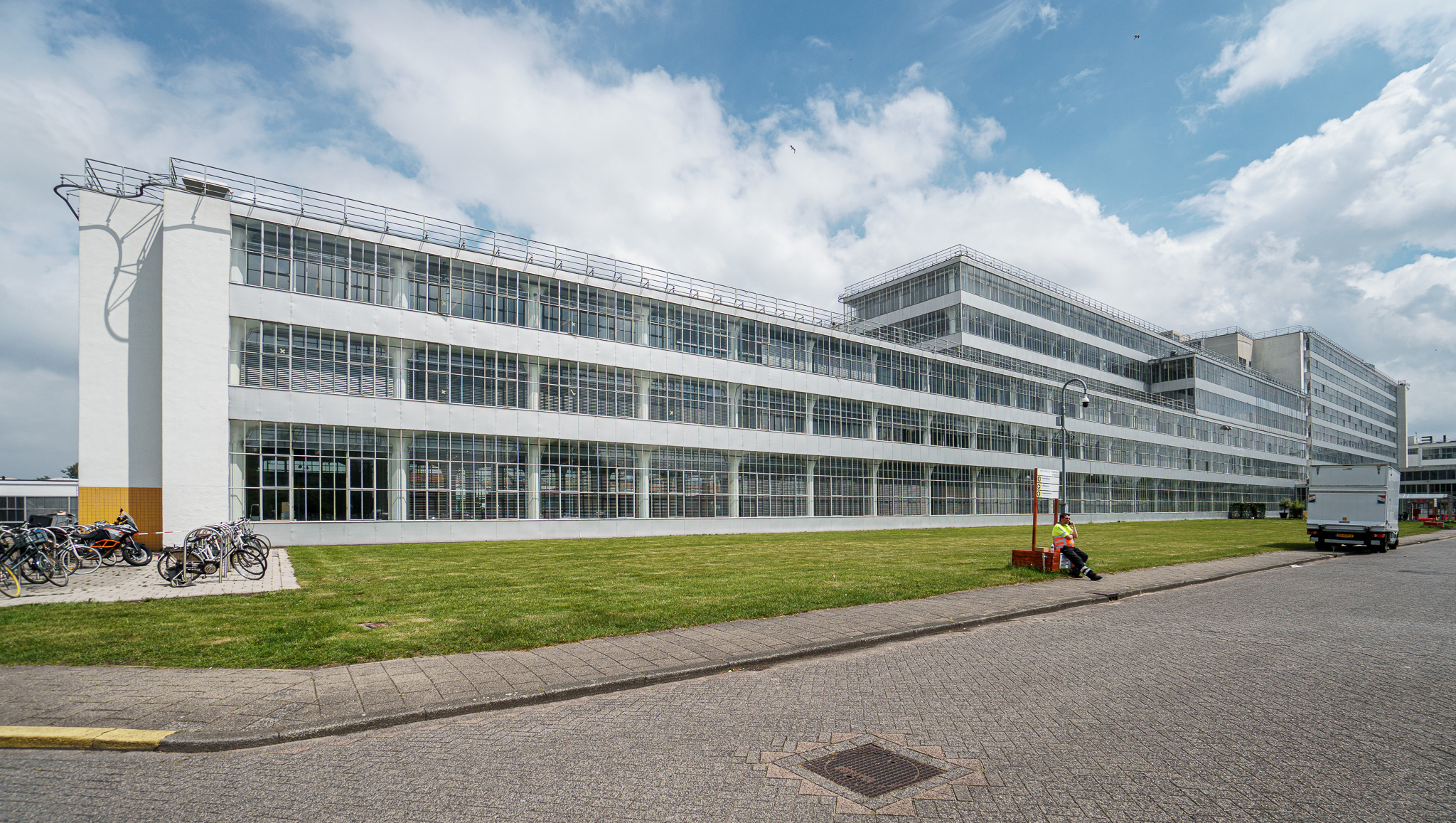 The Van Nelle Factory buildings were designed by architect Leendert van der Vlugt in cooperation with civil engineer J.G. Wiebenga, who was a specialist in reinforced concrete.