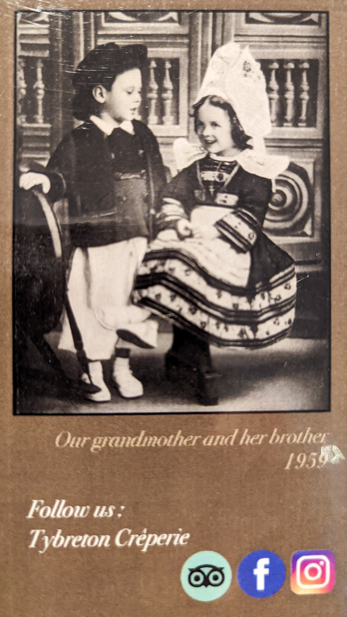 We had two delicious dinners at Ty Breton Creperie in Palavas. It is a family-owned and operated restaurant. The granddaughter and great-granddaughter of the girl in the photo served us. They were delightful!