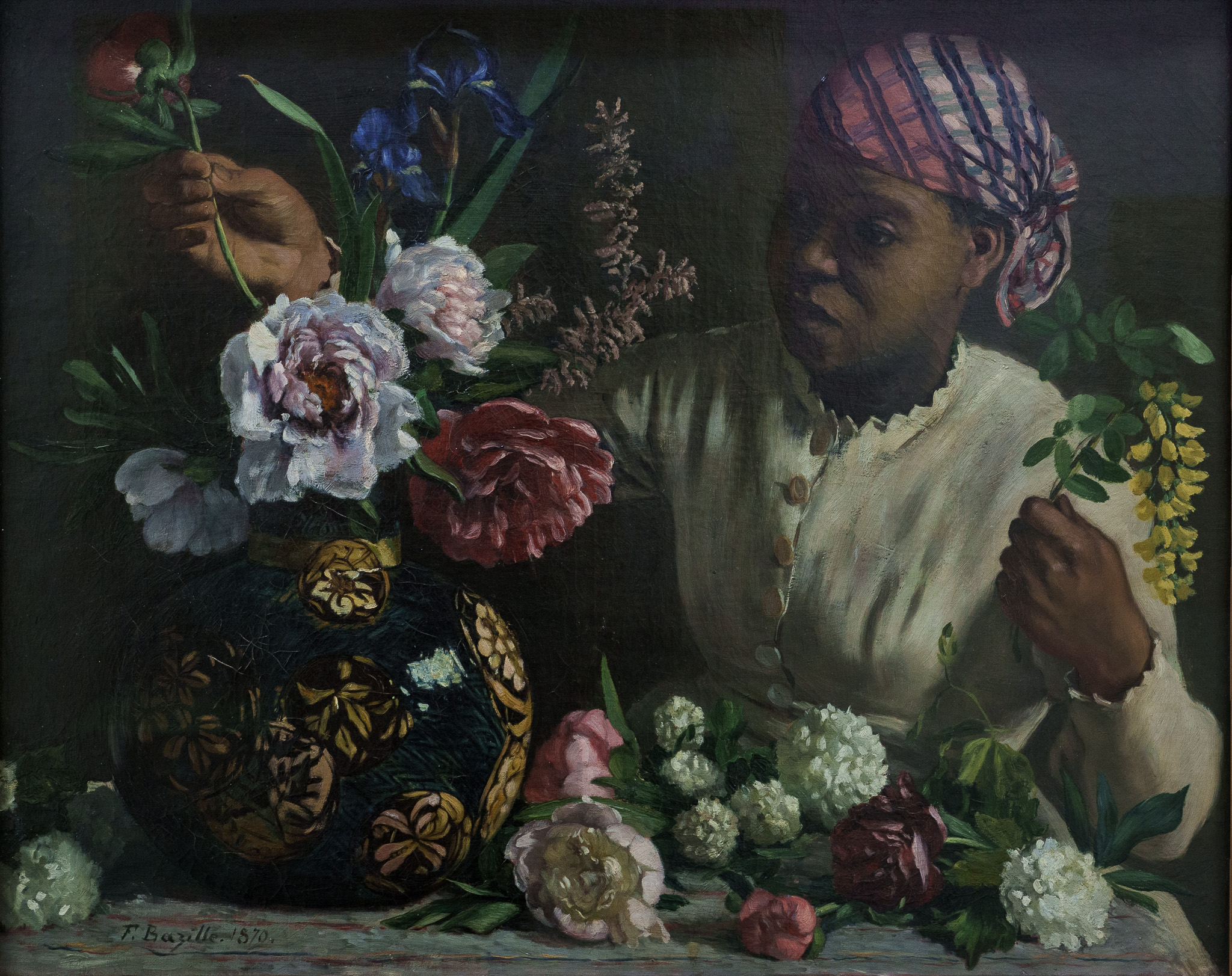 Frédéric Bazille, 'Jeune femme aux pivoines (dit précedemment Négresse aux pivoines)' - 1870