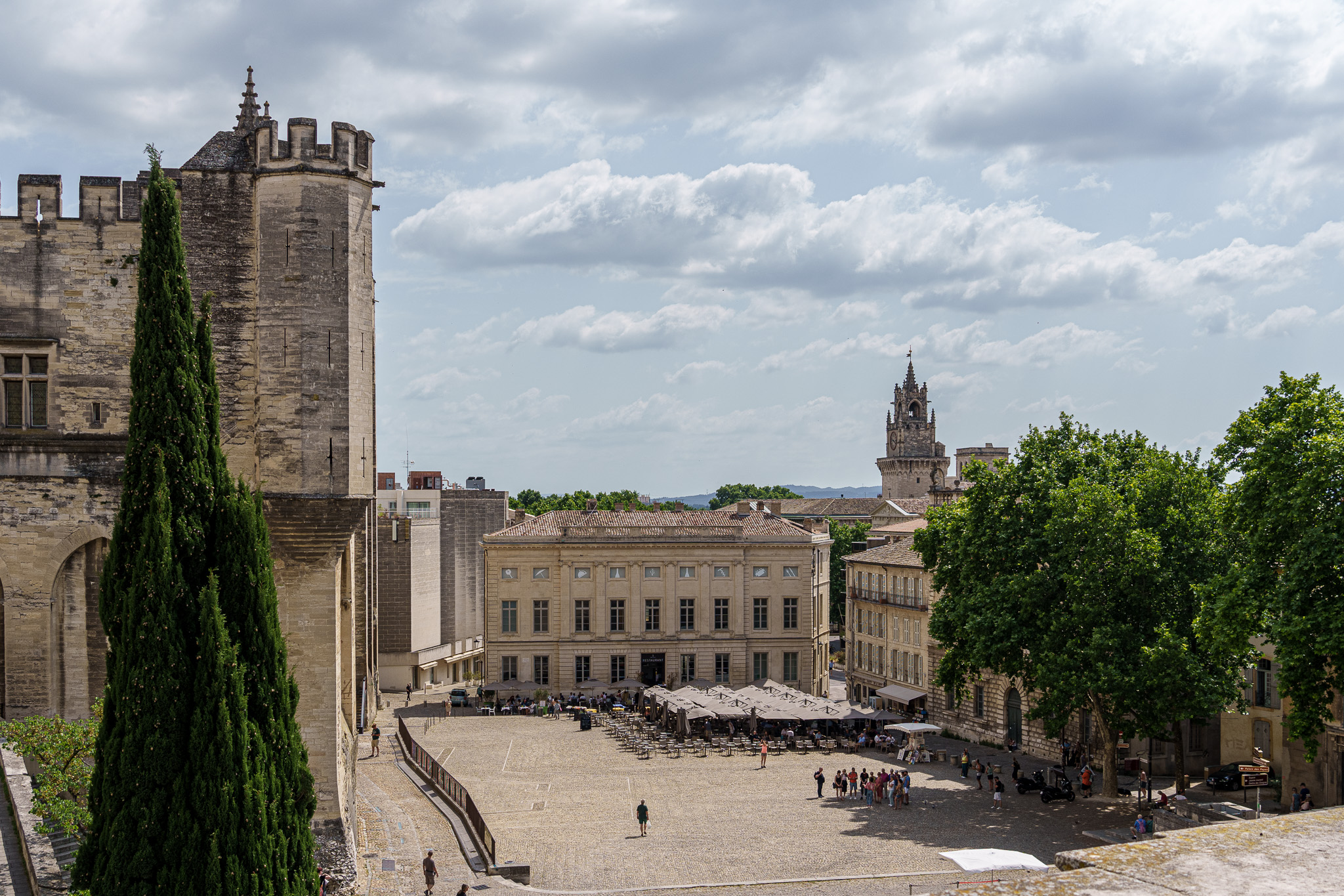 The plaza in front of the Palace of the Popes (at left). Our lunch restaurant was located in the building in the center of this photo.