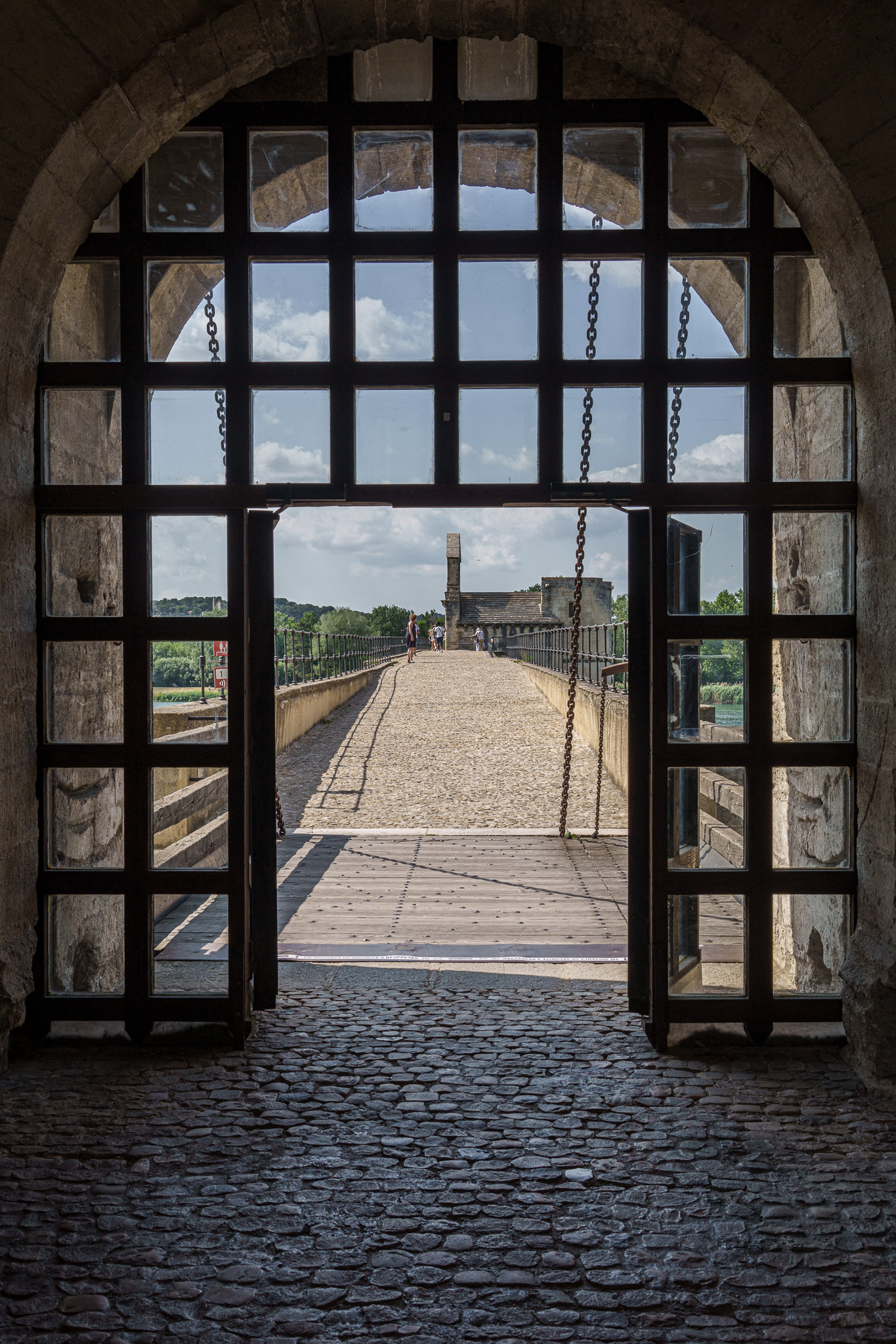A view of the Pont d'Avignon from the gatehouse - The building on the bridge is Chapelle Saint-Nicolas.