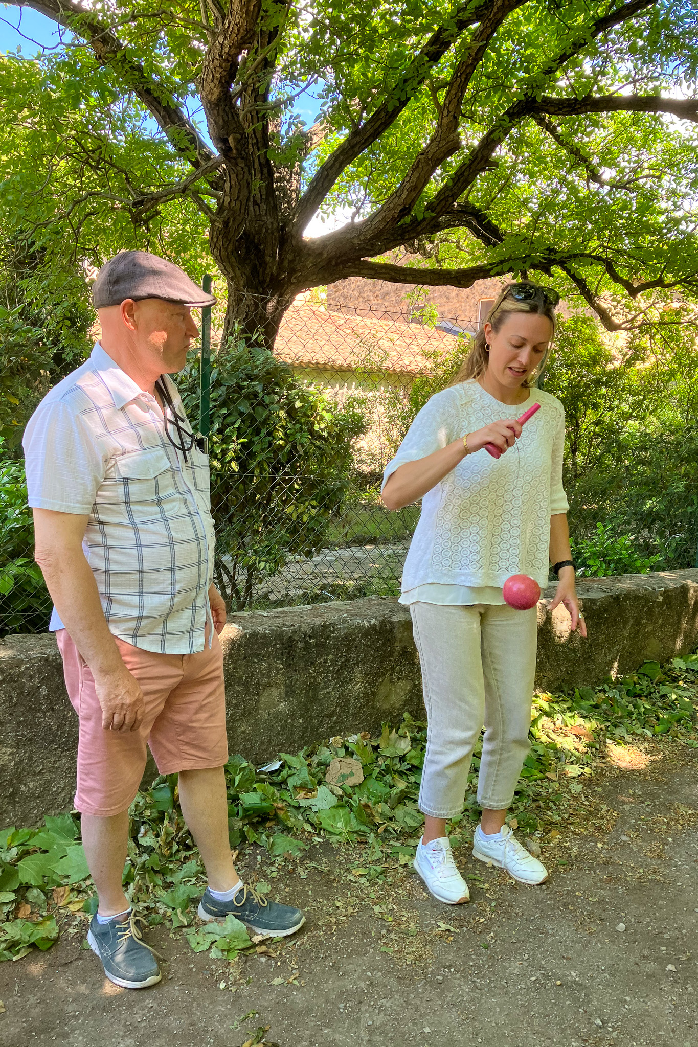 Stéphane had a bag of tricks. Here Julia is trying to catch the ball on the stick.