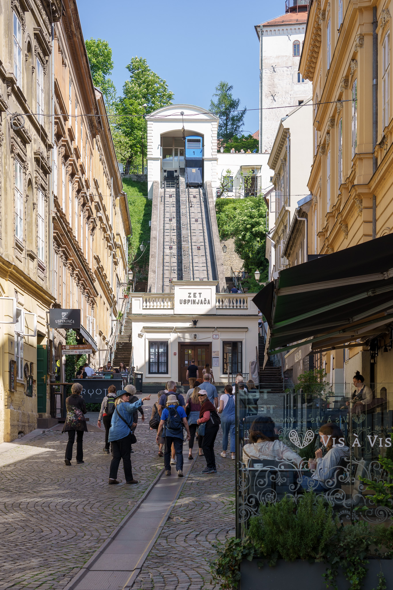 Our group preparing to board the funicular to the upper town