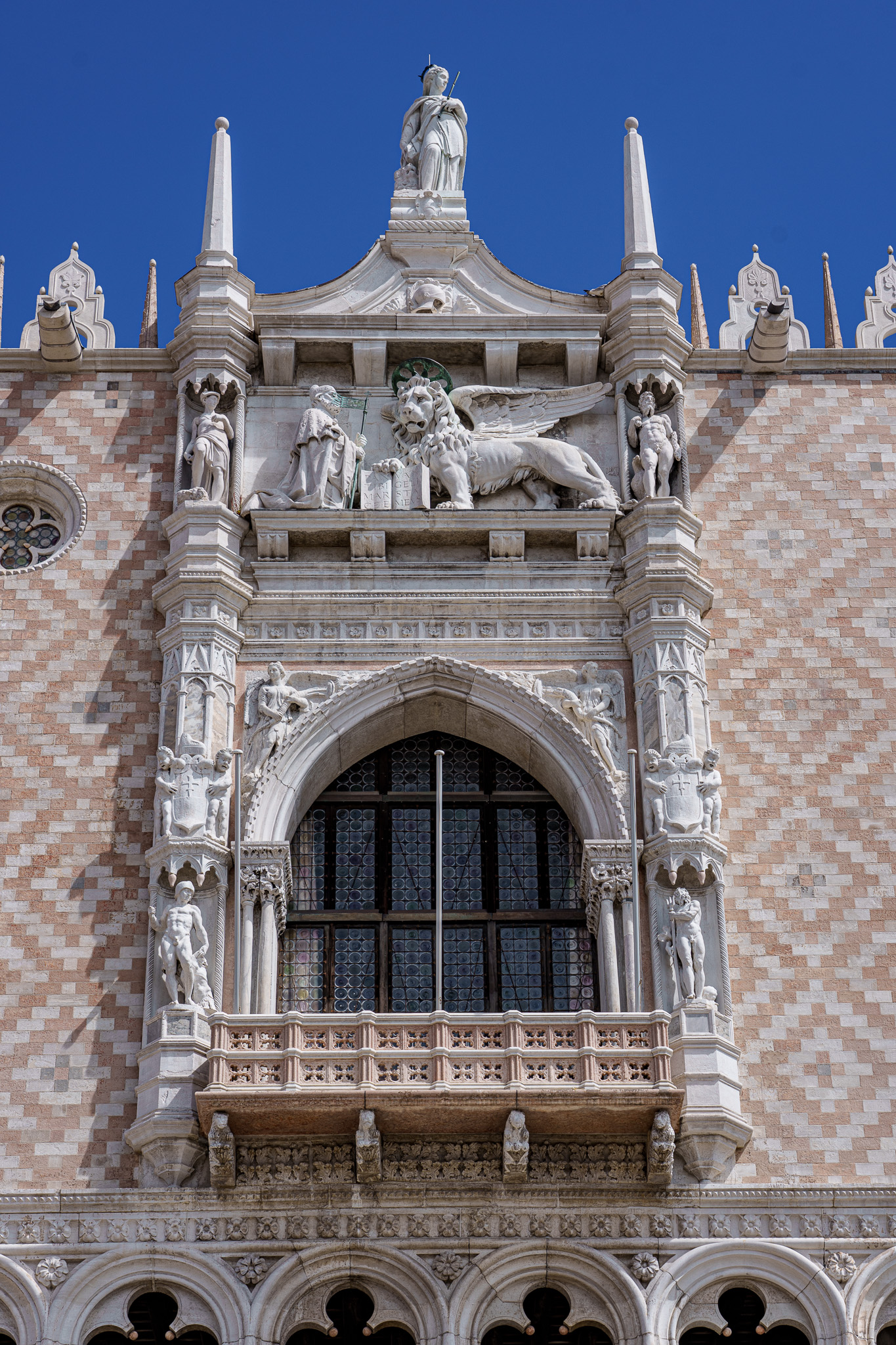 The Doge was akin to what we might call a city manager. He was appointed for life by the Council. He served (kneeling to the left) the Council (symbolized by the lion).