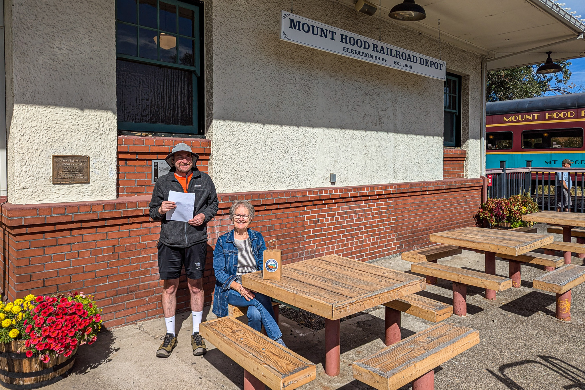 Jeff and Kathy at the Mount Hood Railroad Depot before the railbike ride