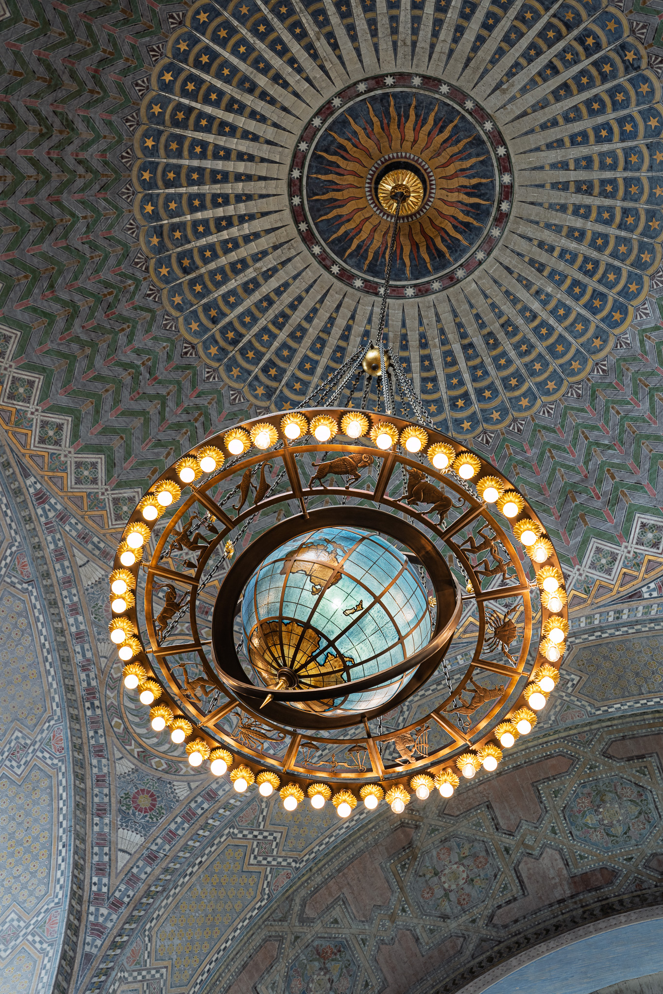 Ceiling and chandelier in the Los Angeles Library's Grand Rotunda